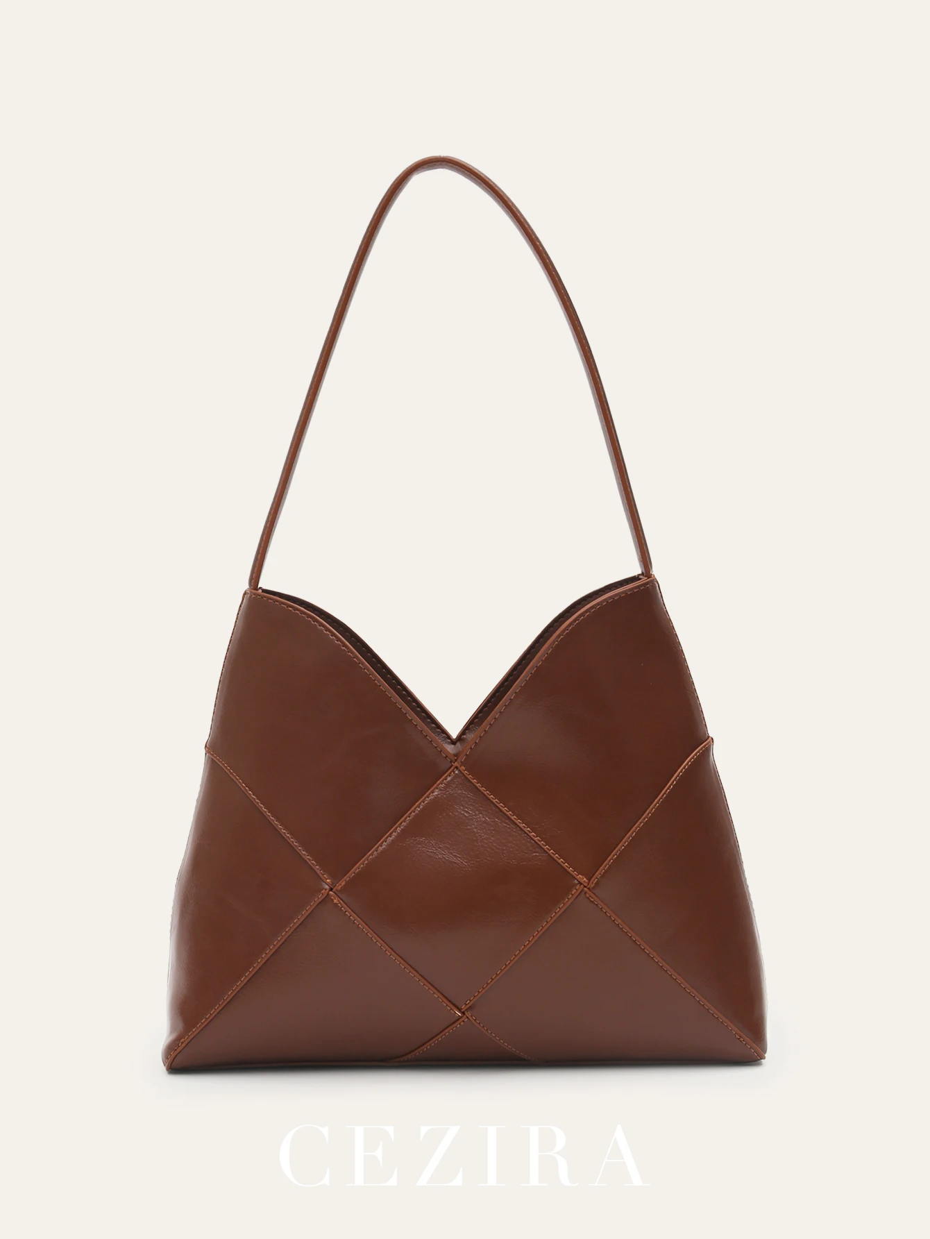 CEZIRA Brand Fashion Elegant PU Leather Diamond Check Zipper Closure Baguette Shoulder Handbag for Women Daily Office Casual