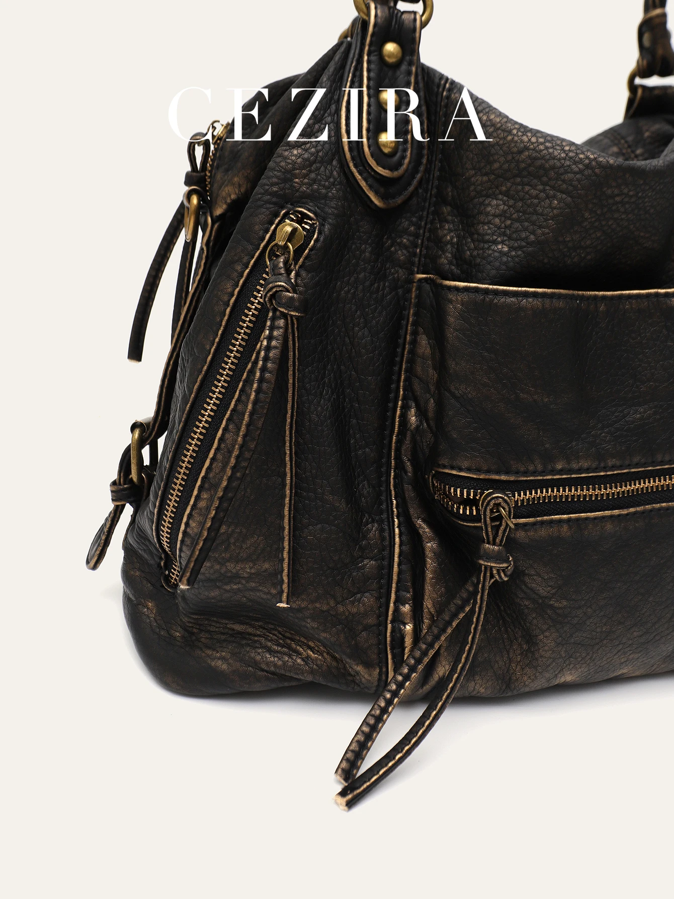 - Product Name: CEZIRA Washed Vegan Leather Pockets Shoulder Hobo