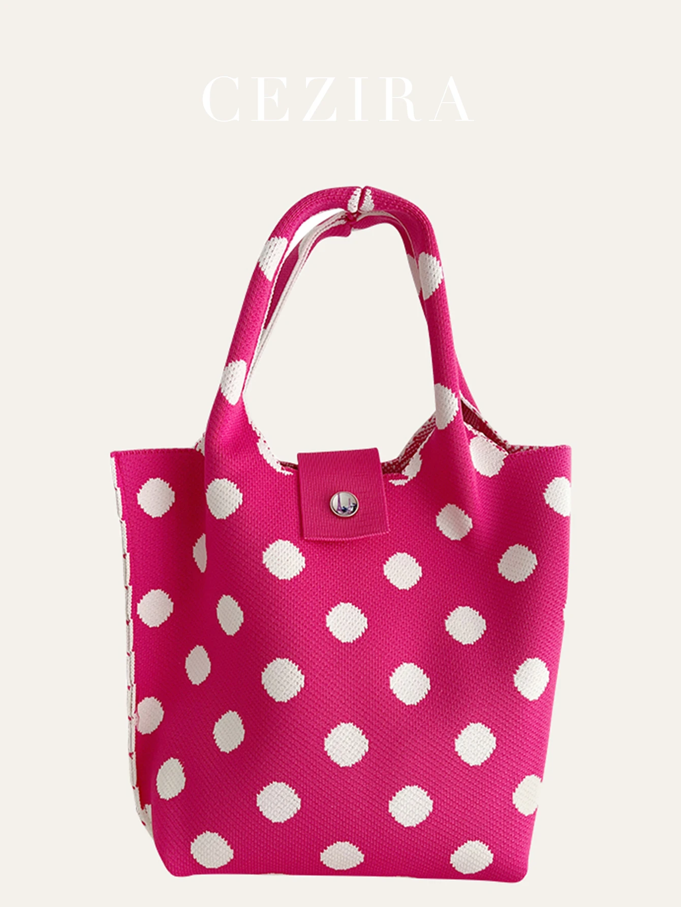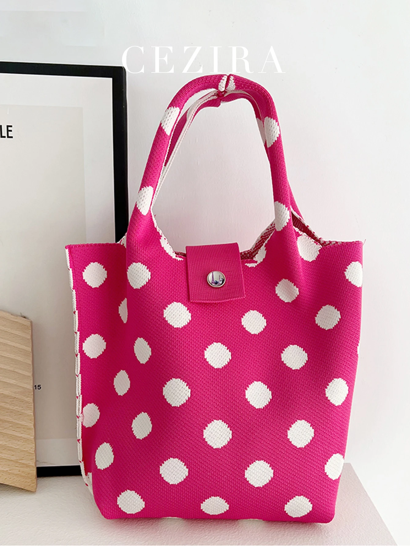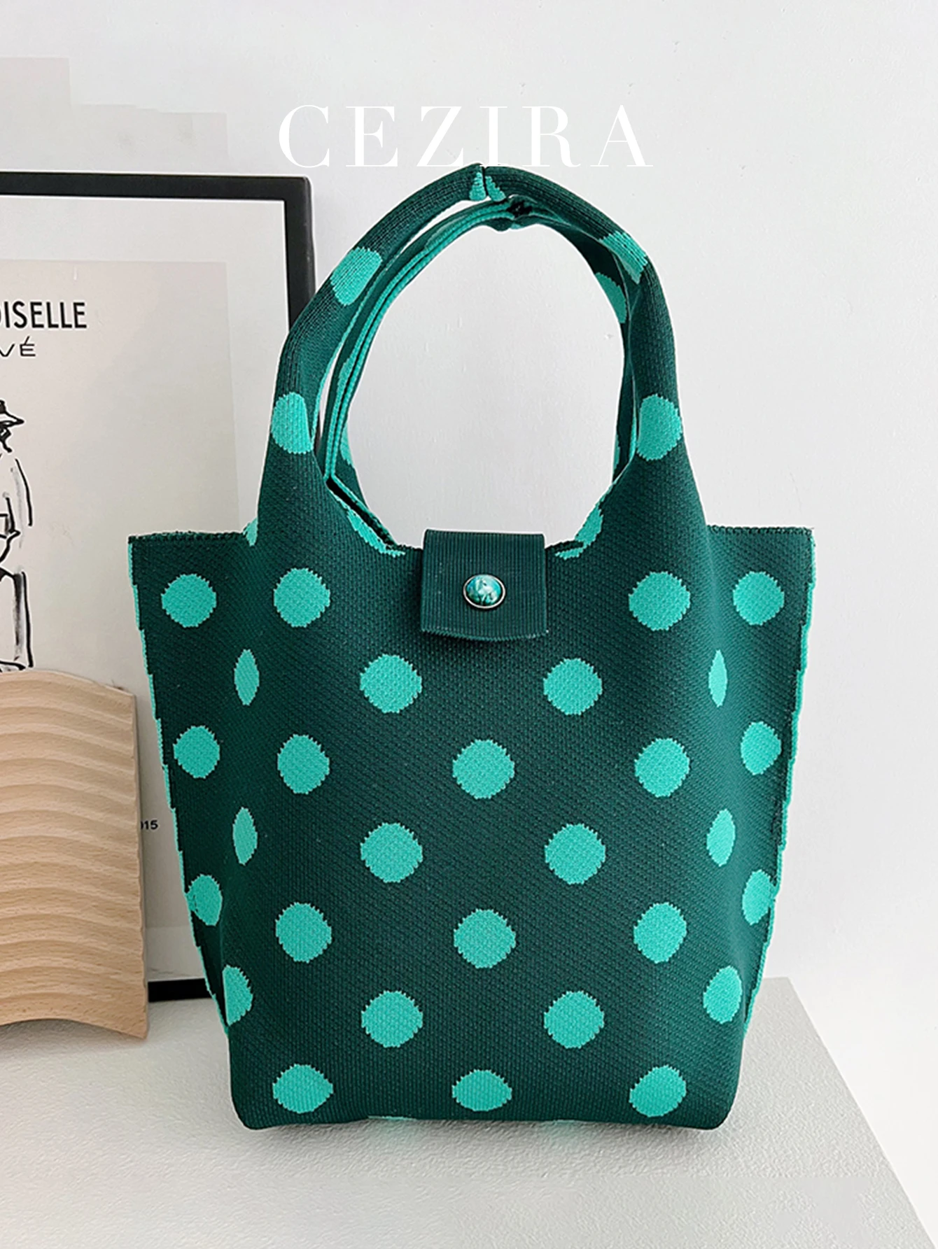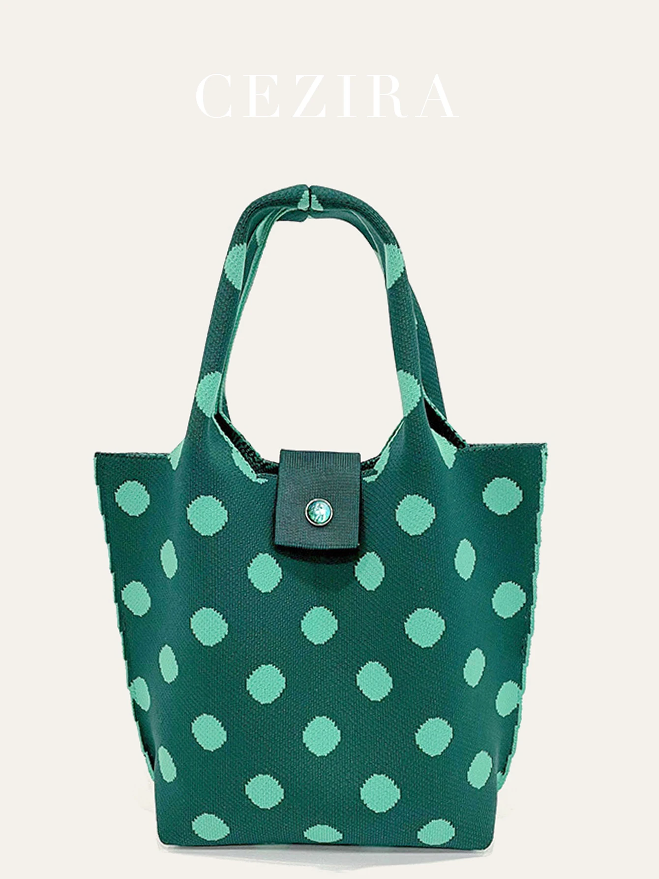 Be the first to review “CEZIRA Polyester Knitting Handbags Contrast Color Dots Pattern Purse Women Top-handle Bucket Bags Random Button Daily Travel” Cancel reply