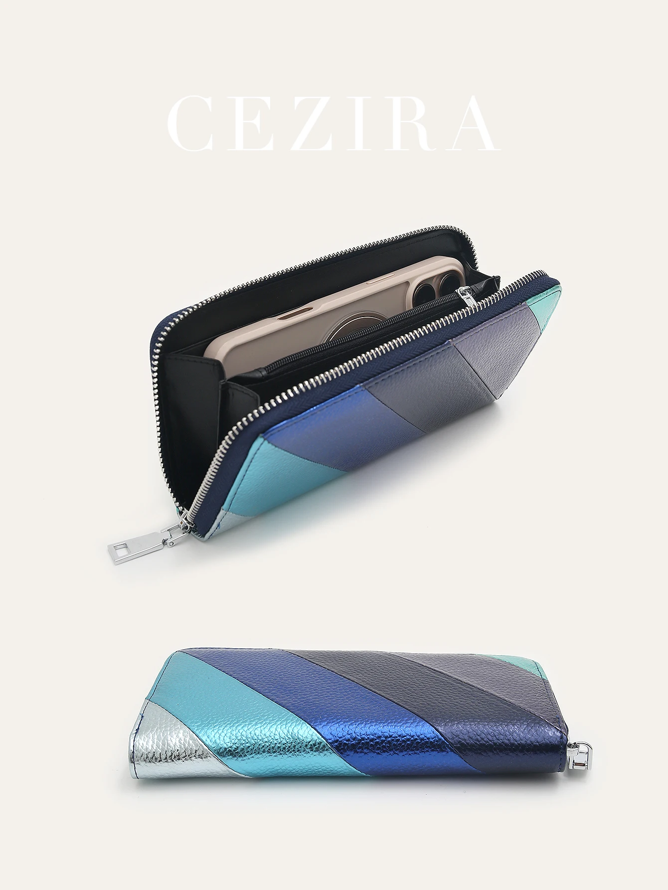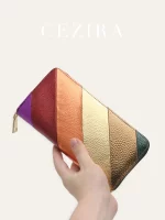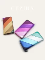 Be the first to review “CEZIRA Women Fashion Metallic PU Leather Long Wallet Luxury Colorful Stripes Patchwork Phone Purse Large Capacity Zipper Clutch” Cancel reply
