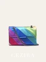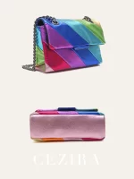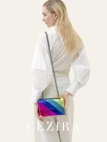 Be the first to review “CEZIRA Women Fashion Metallic Rainbow Color Stripes PU Vegan Leather Bag Small Square Magnet Flap Cover Metal Chain Cross body” Cancel reply