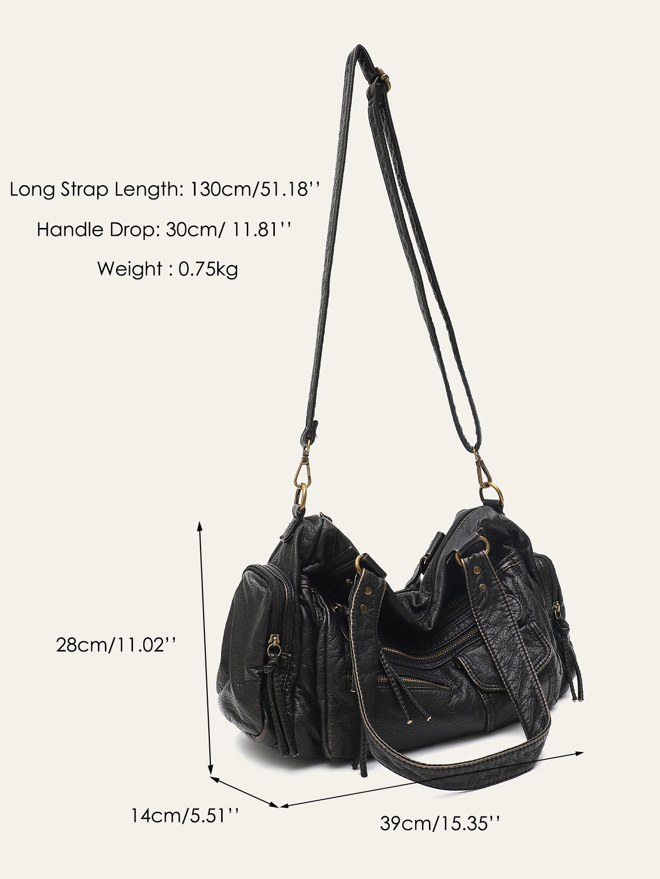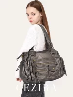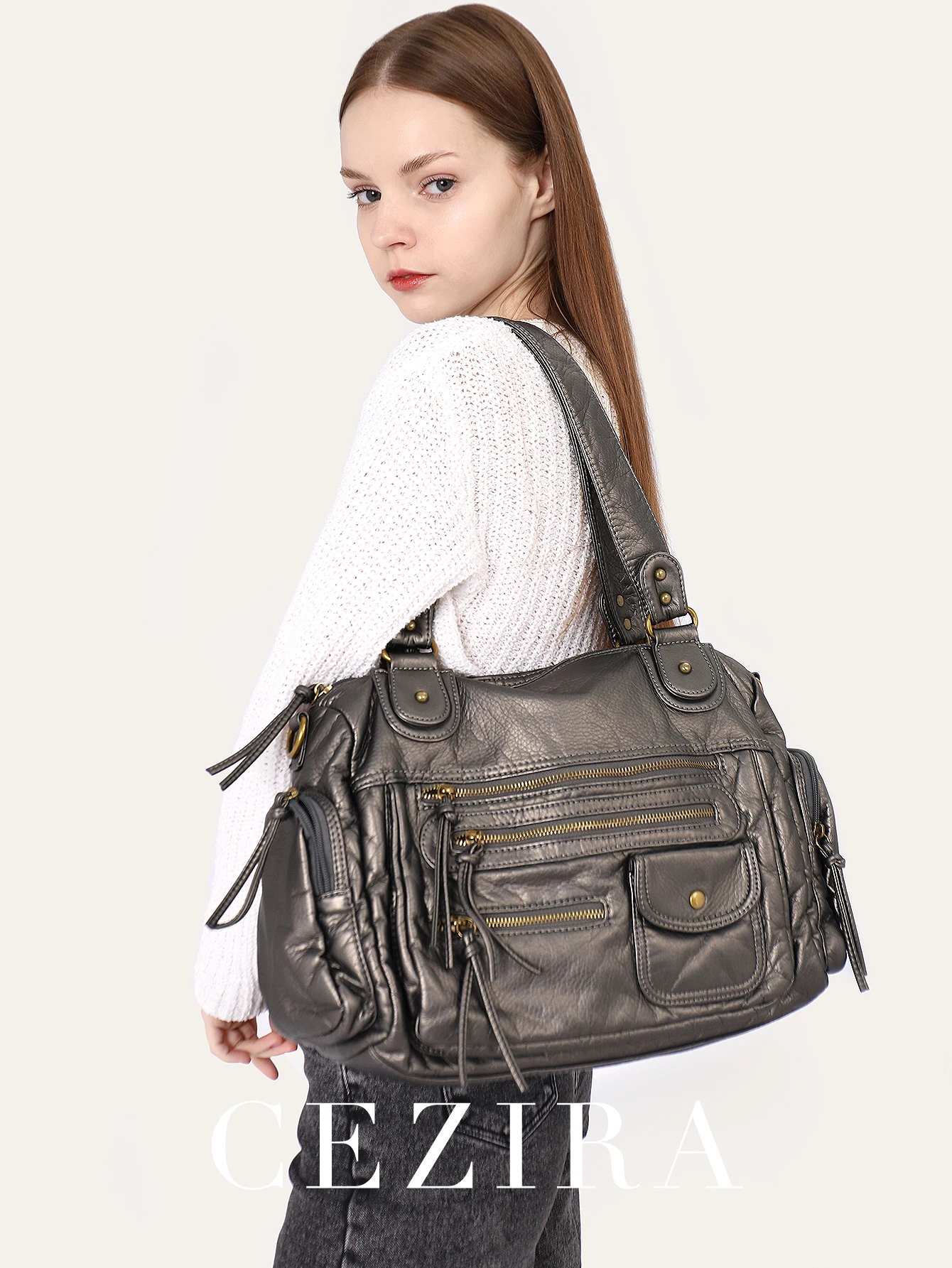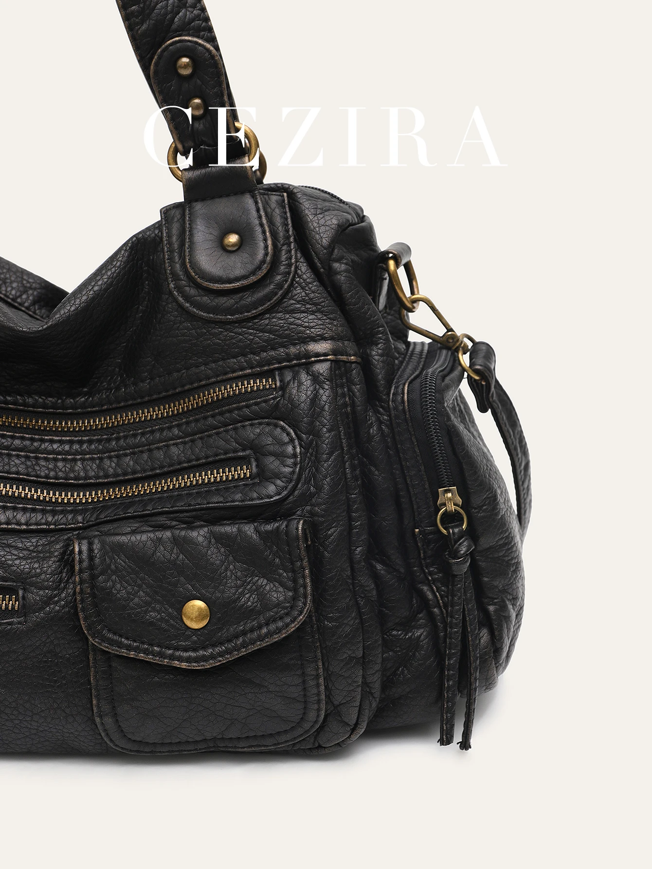 - Product Name: CEZIRA Washed Vegan Leather Pockets Shoulder Hobo