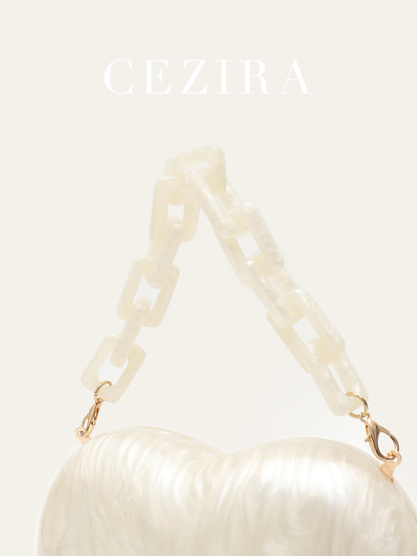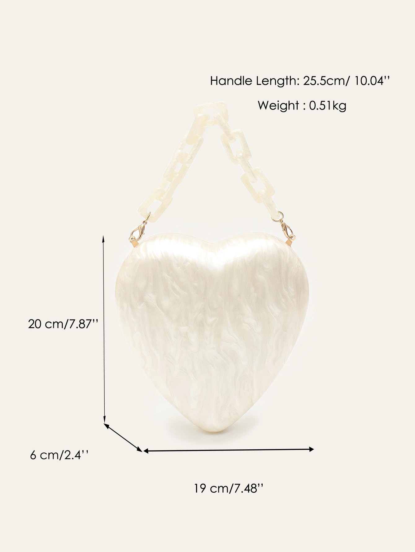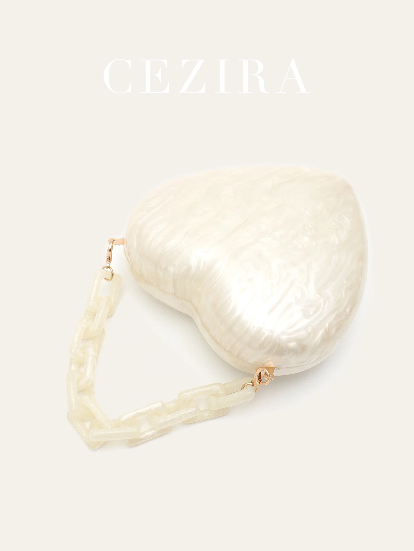 CEZIRA Women’s Brand Fashion Design Elegant Heart Shape Acrylic Clutch Marble Pattern Chain Top-handle Evening Bag Bride Purse