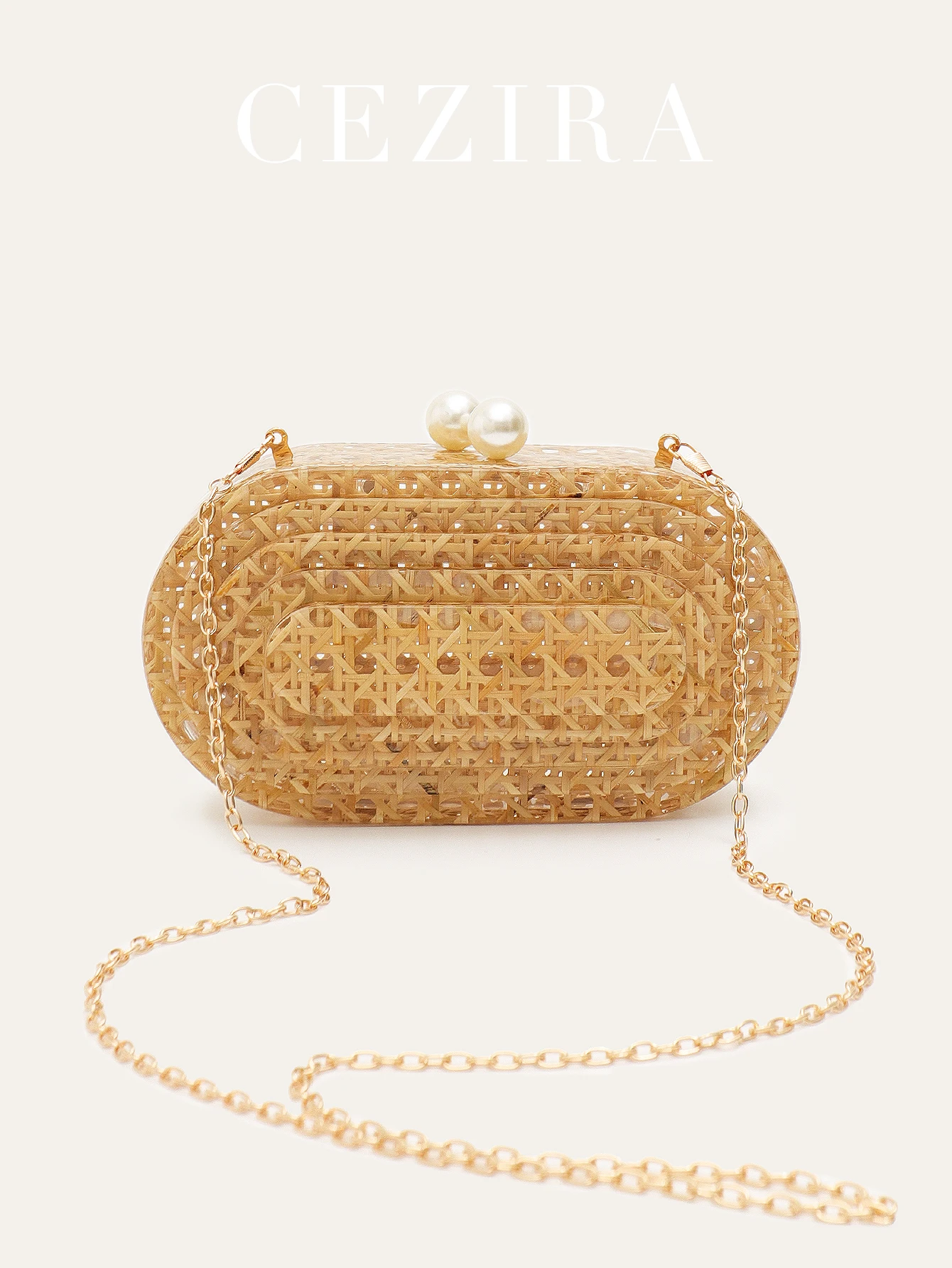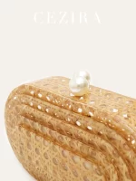 - Product Name: CEZIRA Luxury Rattan Woven Acrylic Evening Clutch