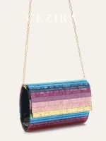 Be the first to review “CEZIRA Women’s Niche Design Colorful Striped Acrylic Clutch Handbag Flap Cover Charming Evening Bag Long Chain Fashion Purse” Cancel reply