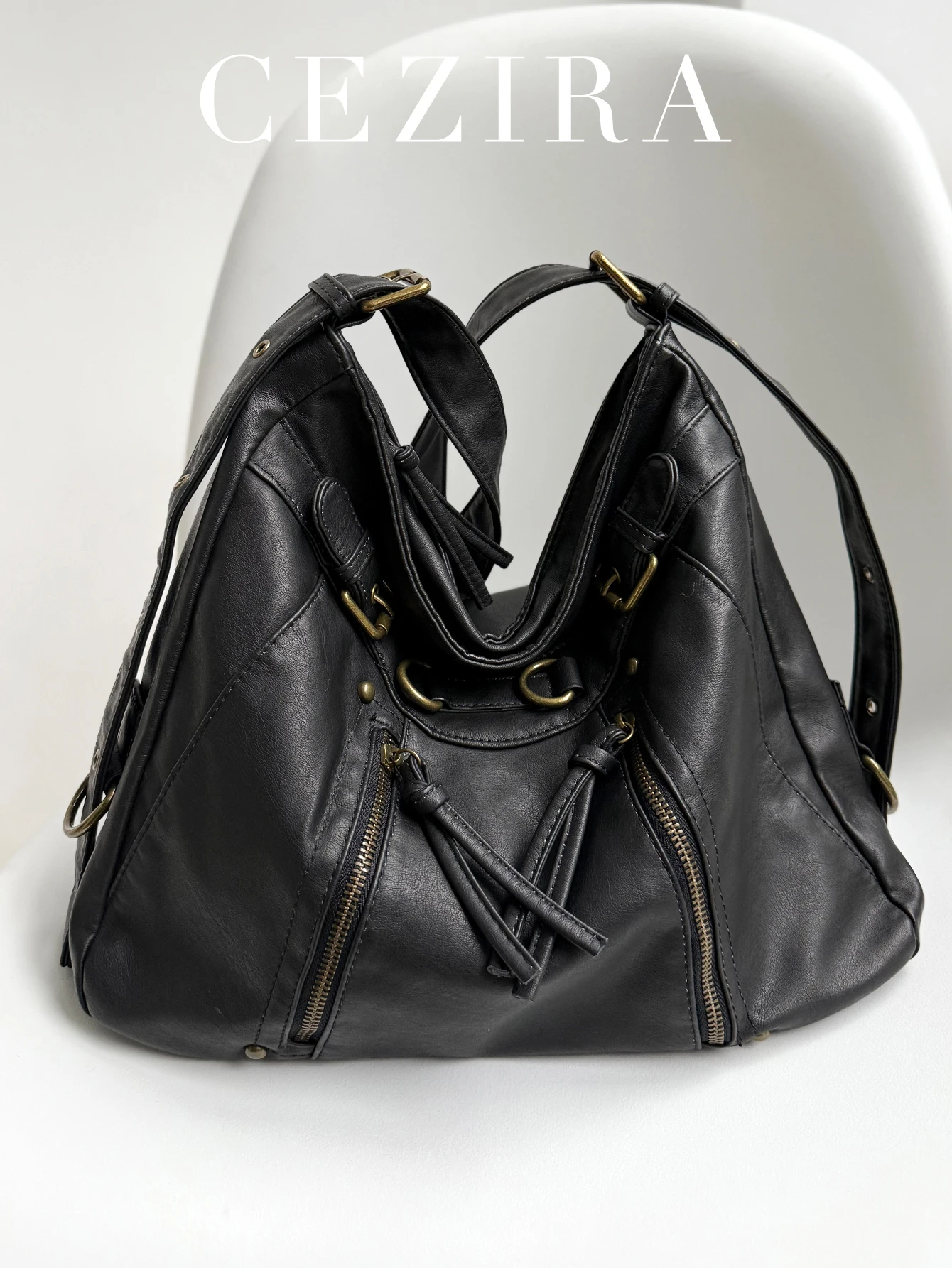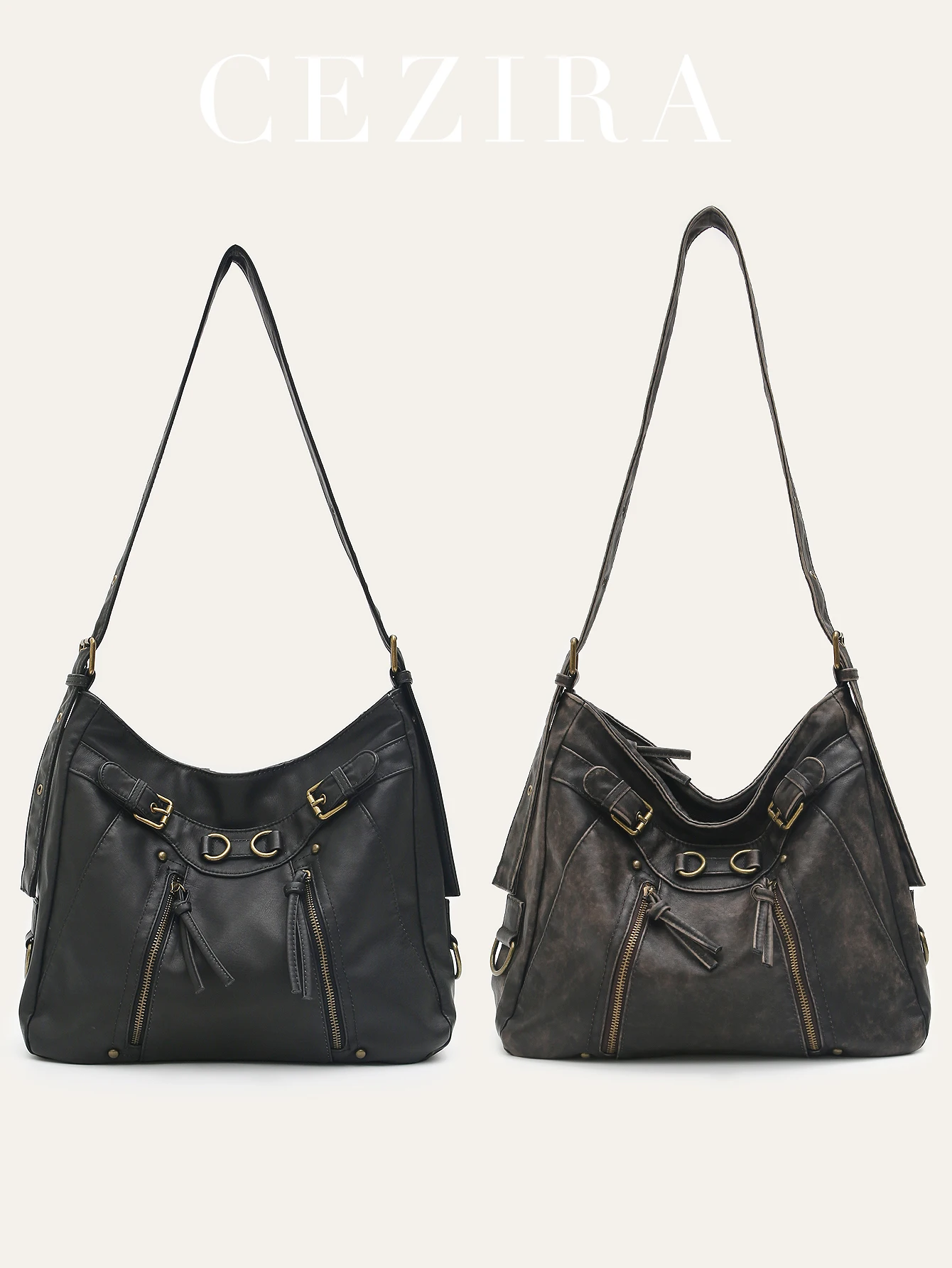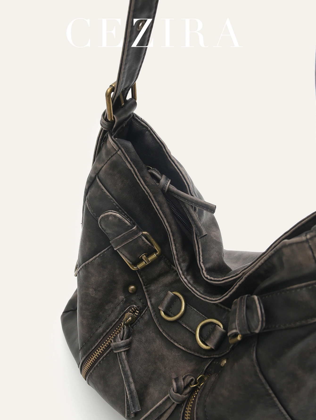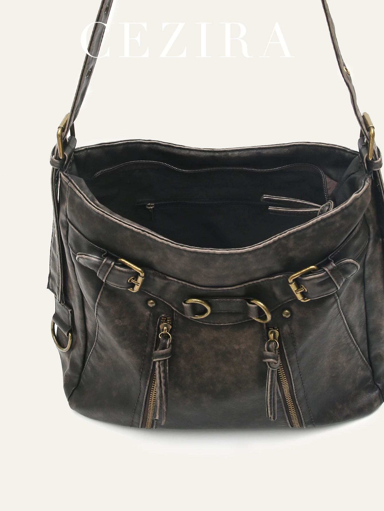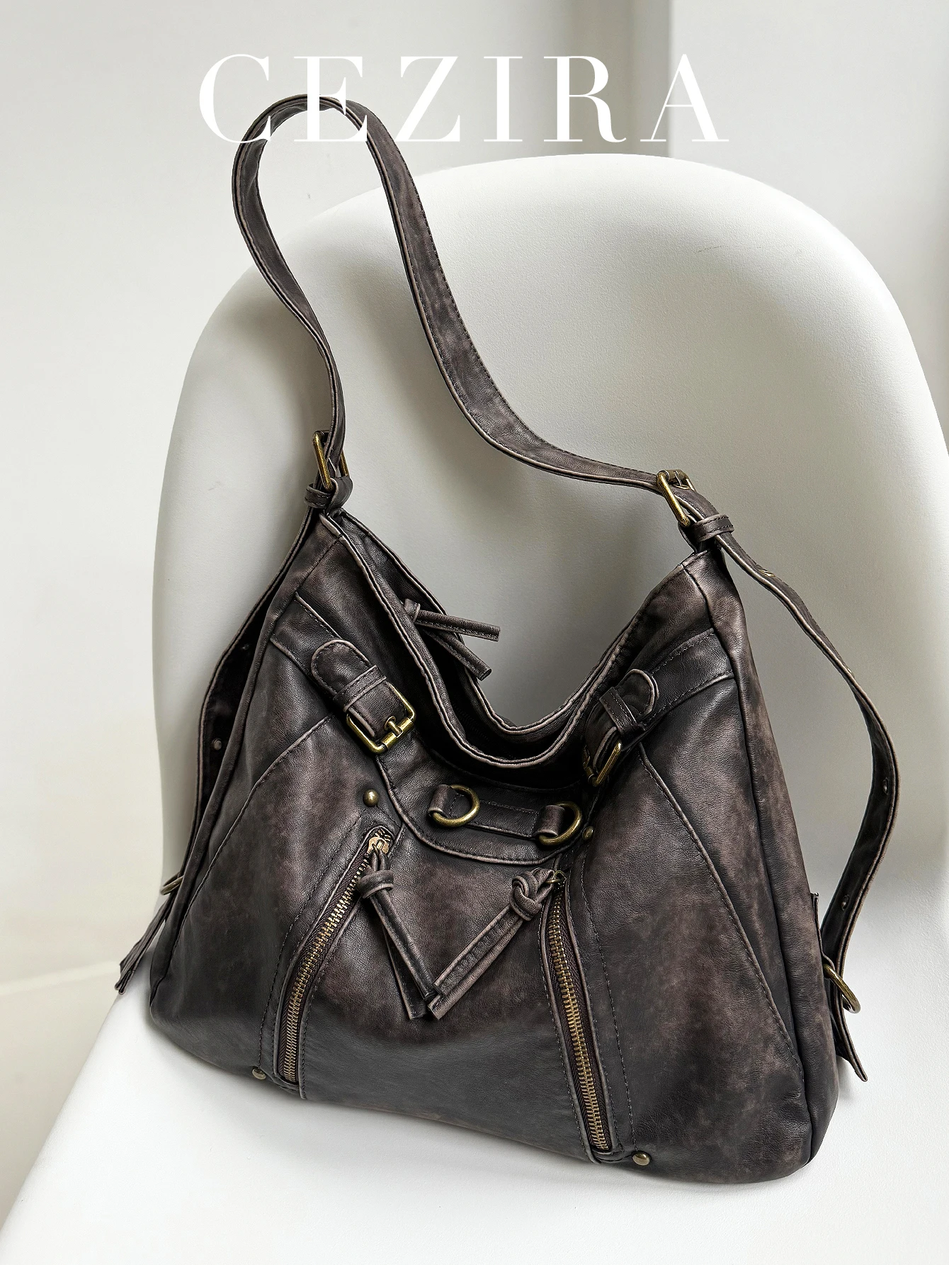 - Product Name: CEZIRA Washed Vegan Leather Pockets Shoulder Tote