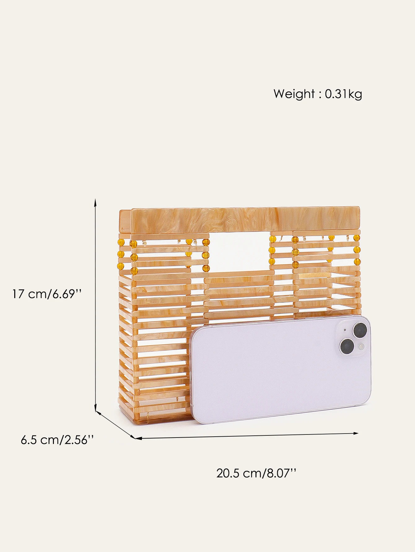 CR Women’s Fashion Acrylic Stripes Hollow out Handbag Open top with Handle Square Beach Bag Unline Top-handle Purse Beads Basket